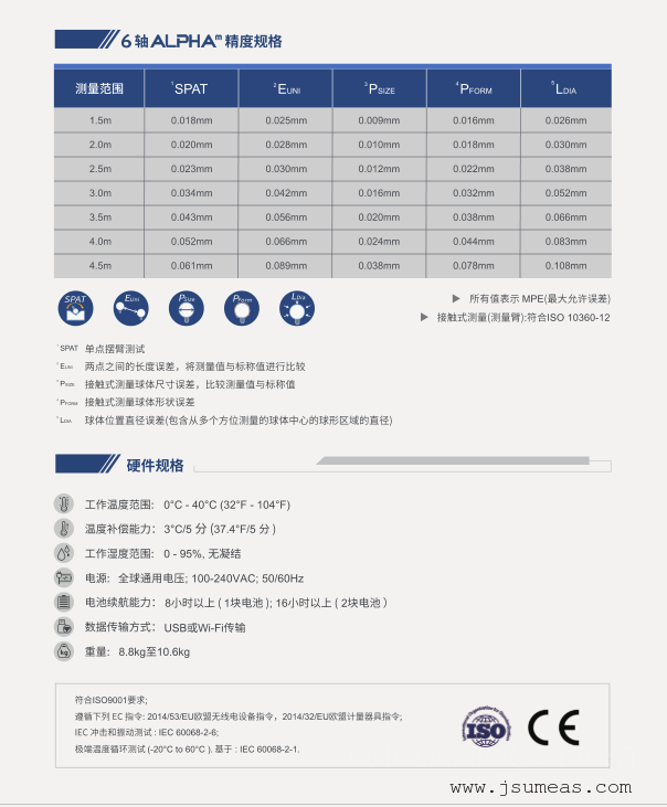 ALPHA M系列高精度关节臂测量机 精度规格ALPHA M系列高精度关节臂测量机 技术优势