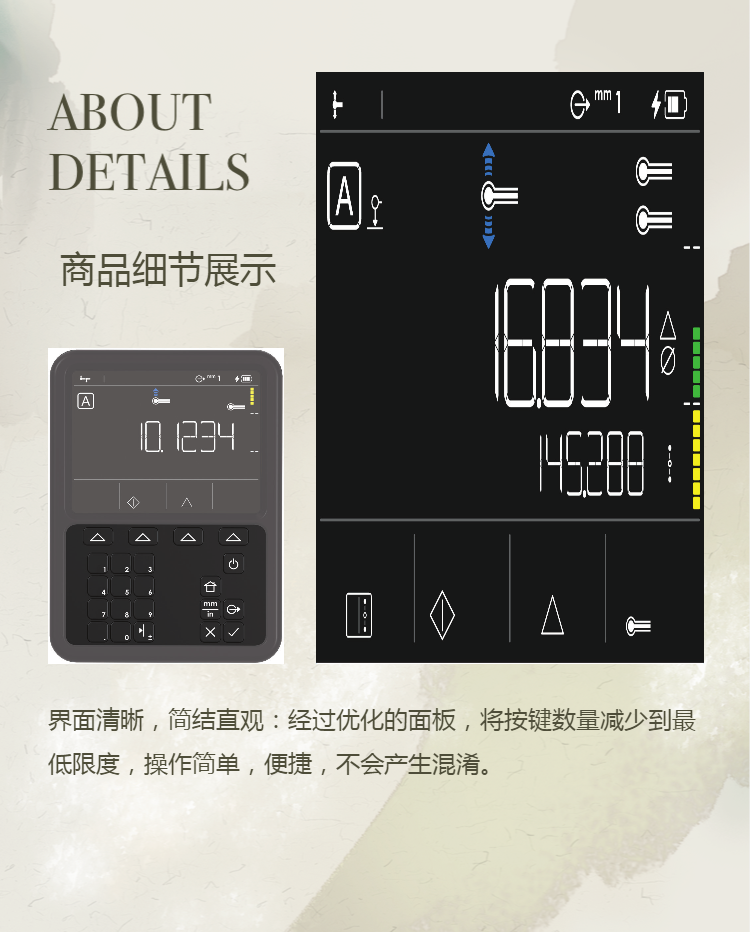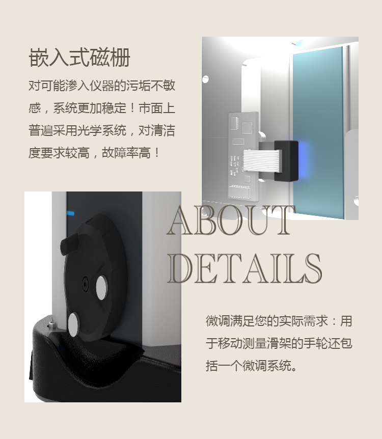 该款测高仪采用有内置磁栅测量系统,突破传统光栅型设计,可防尘;