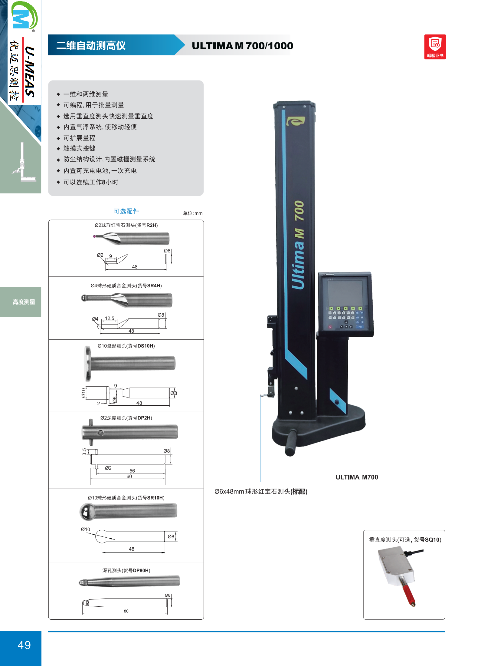 Optima二维自动测高仪ULTIMA M 700/1000产品特点及技术参数