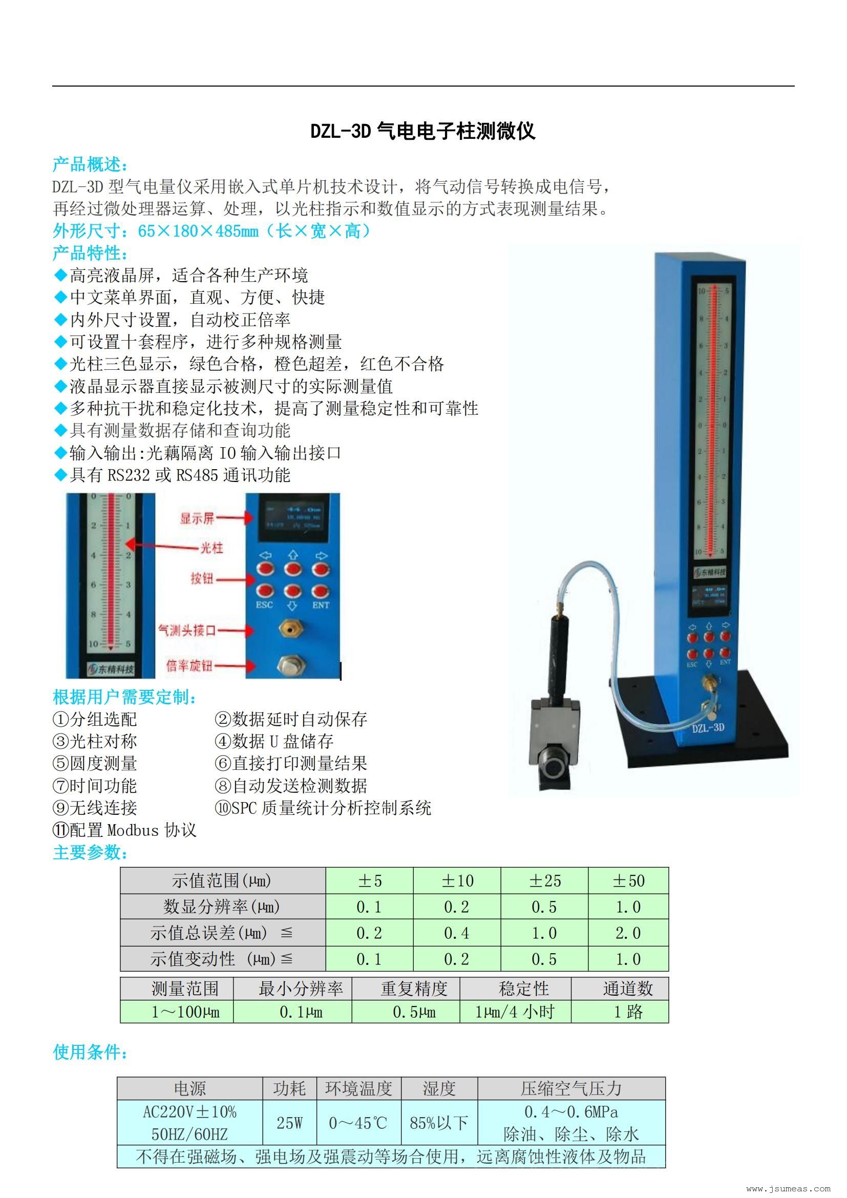 UMEASMC三色电子柱数显气动量仪DZL-3D
