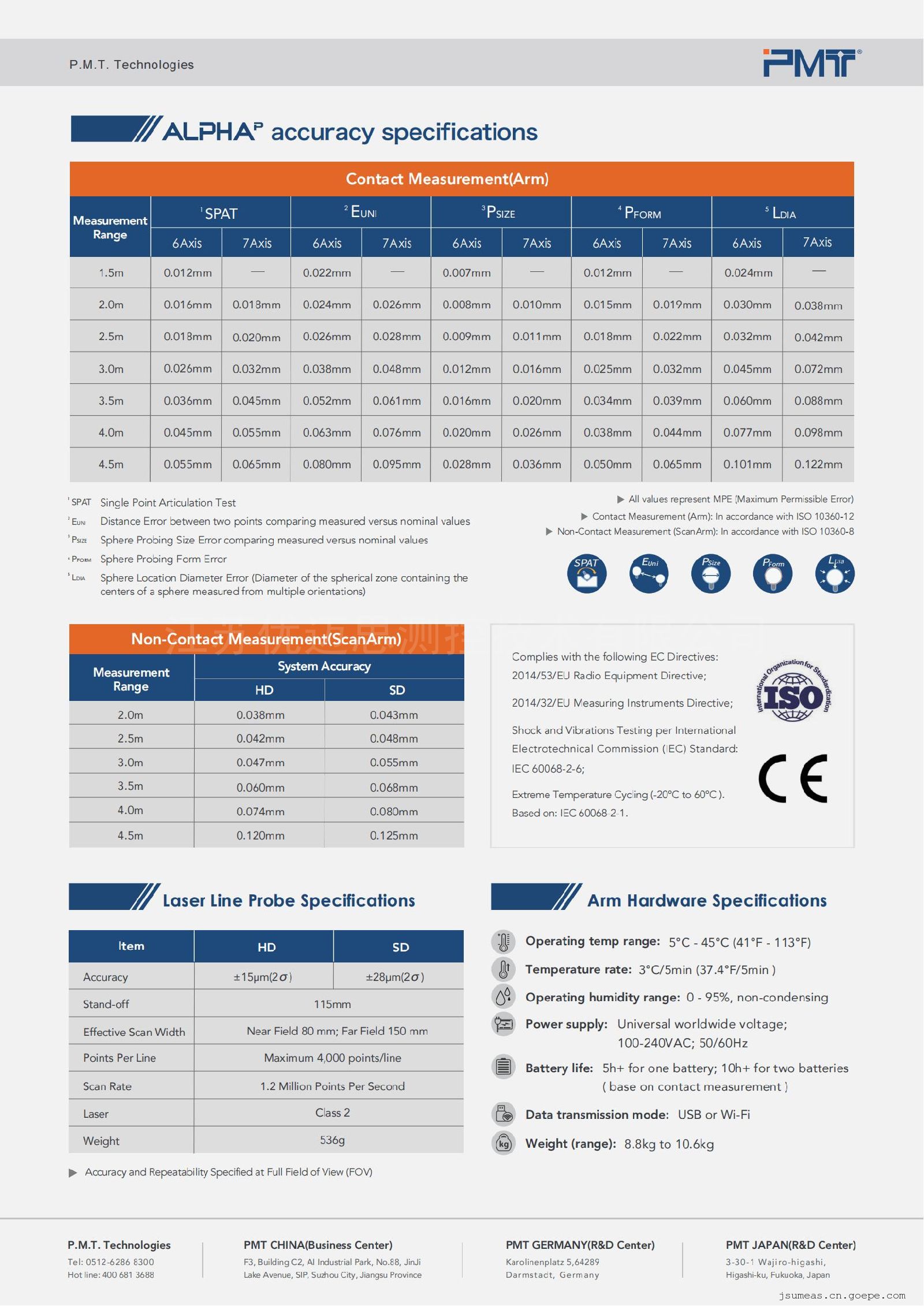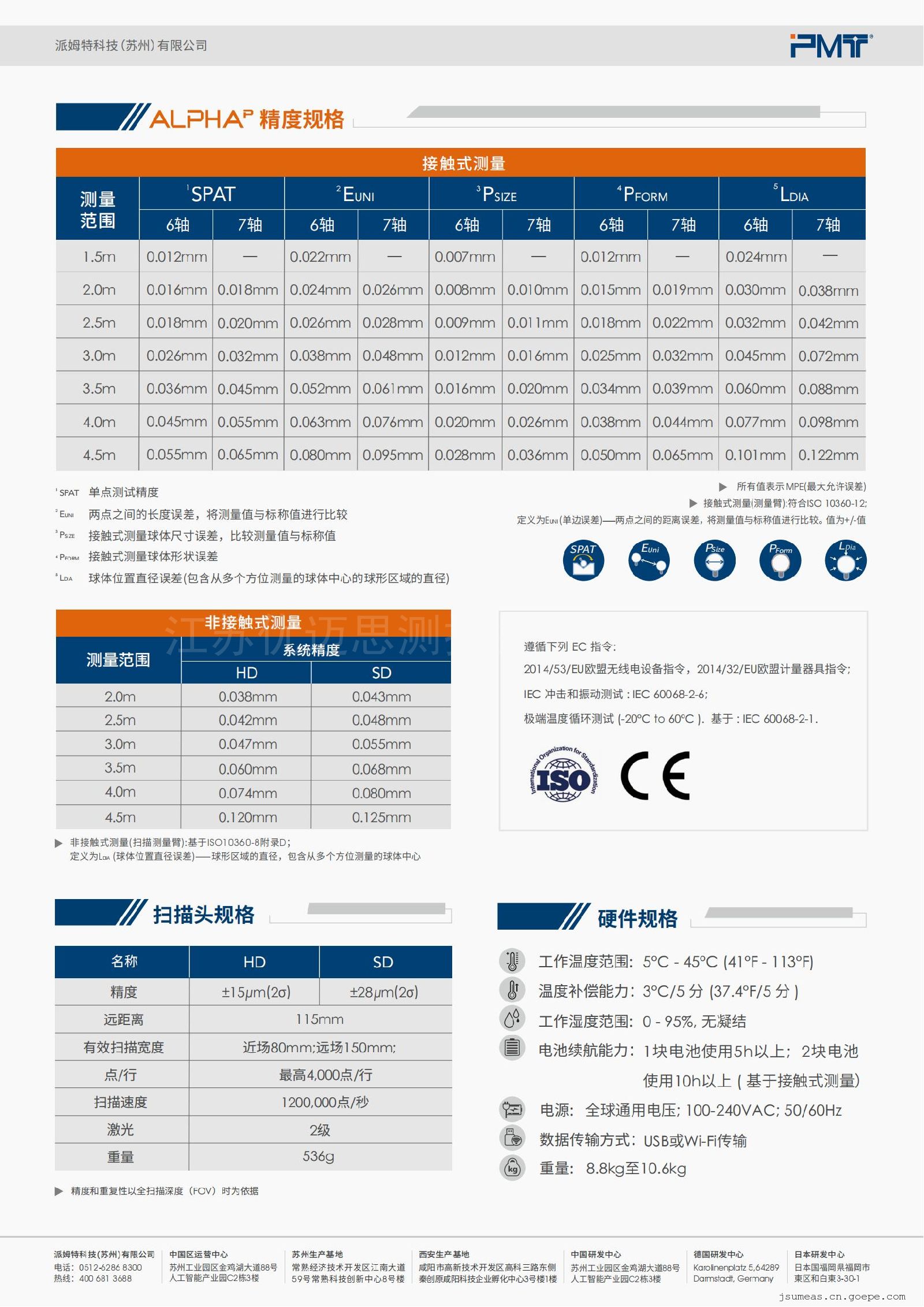 PMT 7轴关节臂P级 ALPHA P 2.0M 2.5M 3.0M 3.5M 4.0M 4.5M