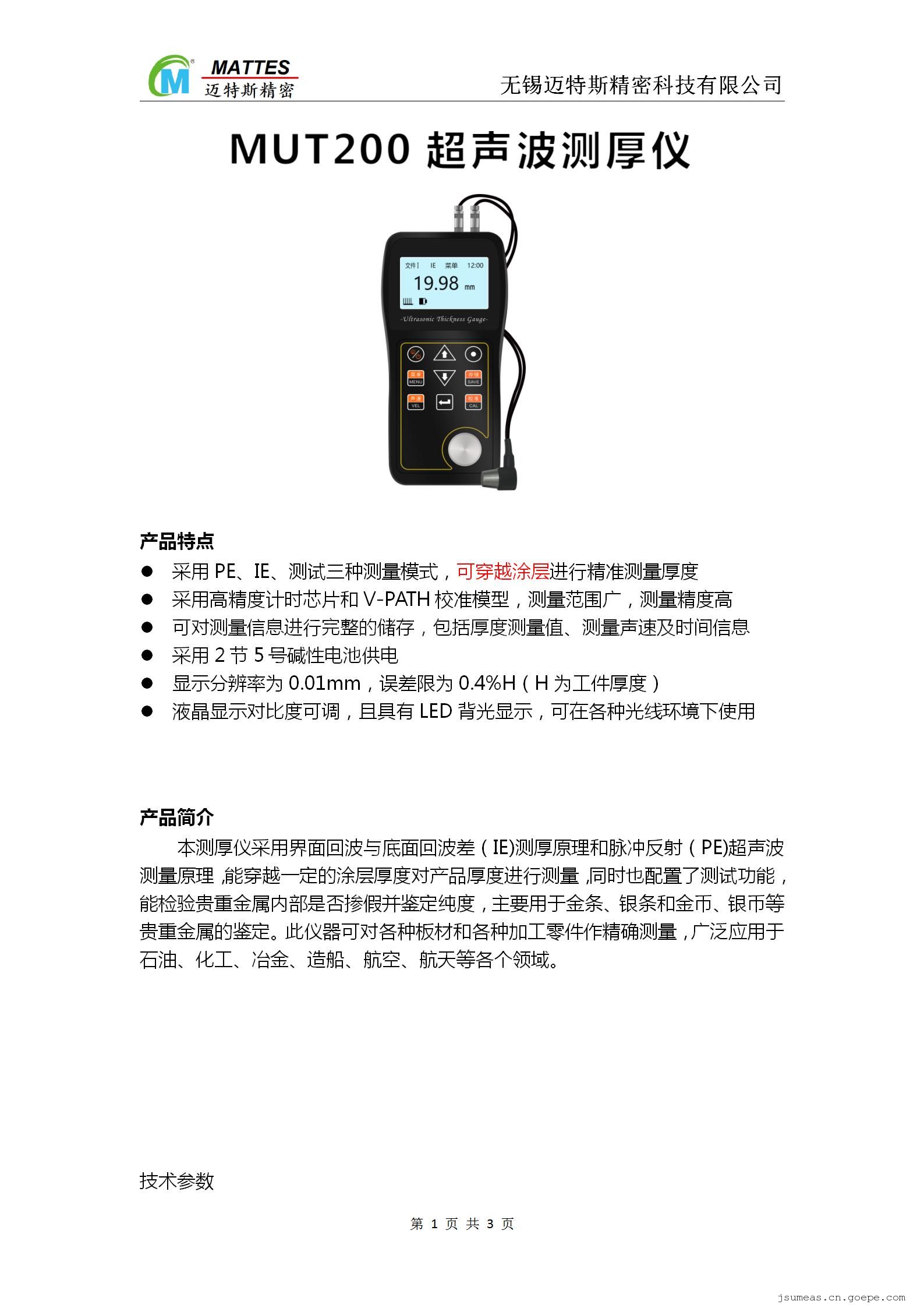 UMEASMC¿É´©Ô½Í¿²ã½øÐо«×¼²âÁ¿ºñ¶ÈµÄ³¬Éù²¨²âºñÒÇMUT200