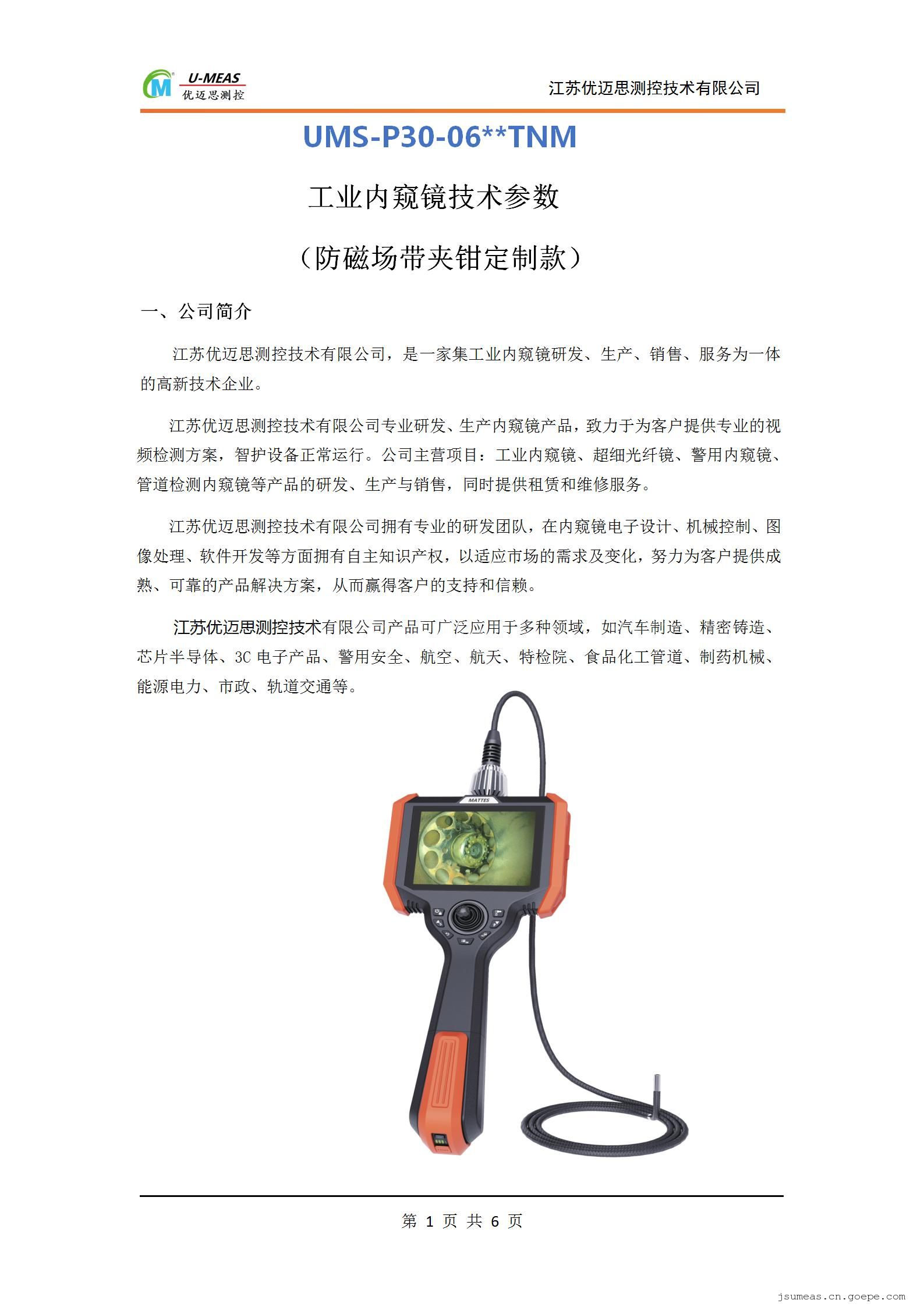 -     UMEASMC可通过探头物镜抓取焊渣、螺钉等异物的带夹钳工业内窥镜UMS-P30-0615TNM产品型号: UMS-P30-0615TNM 品 牌: UMEASMC -